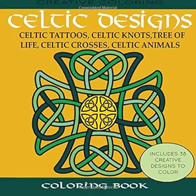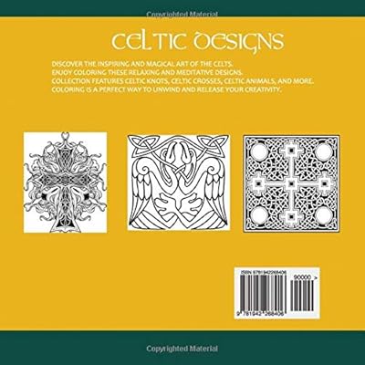 Relax and unwind with this amazing collection of Celtic designs.Includes designs of Celtic tattoos, Celtic crosses, Celtic knots, Celtic animals, sun, moon, and Tree of life.38 full-page designs.Printed on one-side only for no bleed through.Printed on heavyweight acid-free paper.This Celtic designs adult coloring book measures a convenient 8-1/2 inches wide by 8-1/2 inches high.Includes link to download your favorites to color again and again.Suitable for older children, teens, and adults.Get your copy and start coloring!